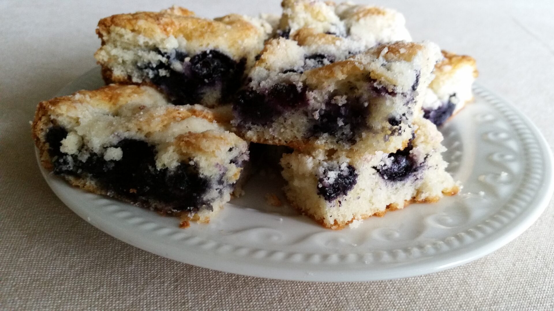 A very light and tasty coffee go-along. No super special ingredients required, so if you need a quick dessert, this will work. Great way to use up those frozen blueberries!