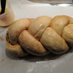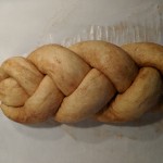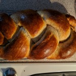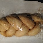 We originally bought egg challahs a Meijer, but they don’t have them at all of their stores. Just the one in Whitestown we’ve found so far. So I hunted for a recipe and found this one on the Cuisinart website. It is freakin’ delicious! Although it seems like a lot of steps, it is really easy to make using the food processor.